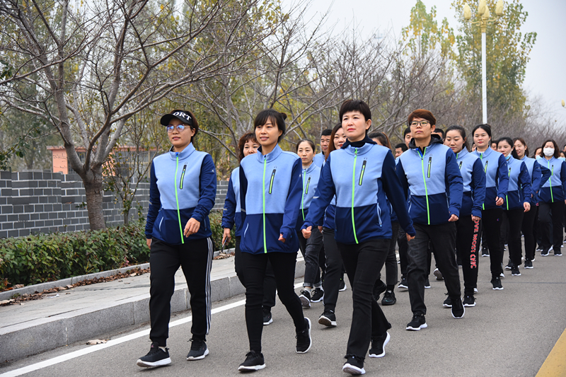 活动以微山县薛河桥为起点,沿河全程7公里。伴随着慷慨激昂的音乐,职工们统一着装,迈着坚定的步伐,昂首阔步在河堤大道上。期间彼此间相互加油鼓劲,现场氛围热烈,幸福的笑容洋溢在职工脸上,平静的薛河水泛起的涟漪也跟着热闹起来。
