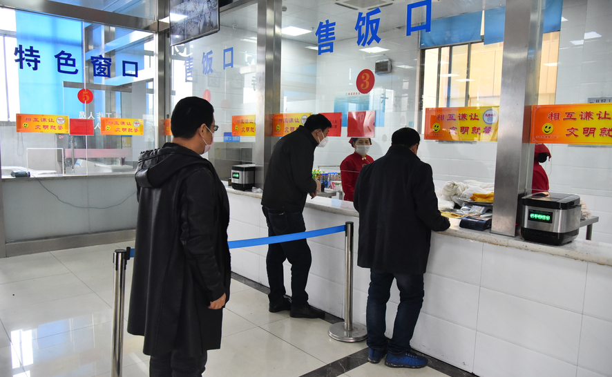 实施错峰就餐,减少人员集中。党群办调研各工区职工就餐时间,根据工作需要,结合实际情况安排合理的分时段就餐,既减少了职工排队等候时间,又避免了人员聚集吃饭问题,实行错时式就餐,保证就餐人员之间距离达到一米以上,更有利于个人防护工作的开展。