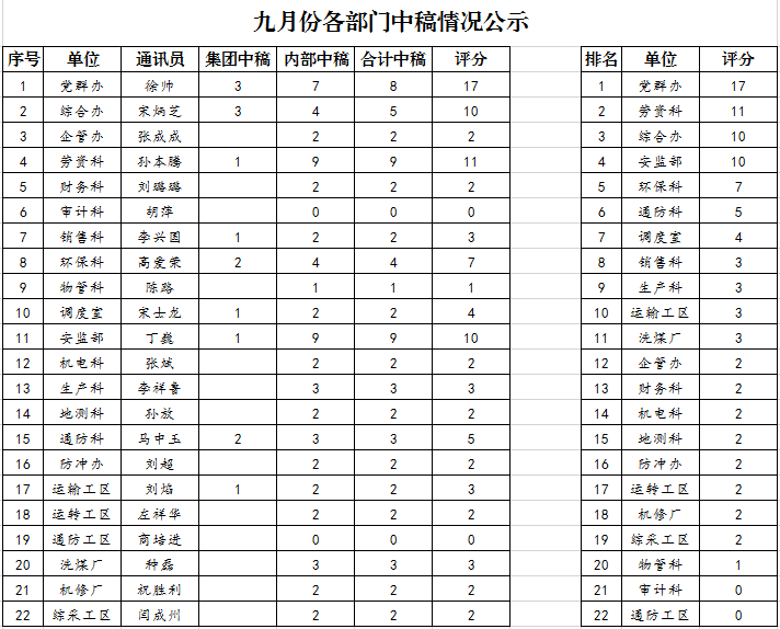 2020年9月份各单位投稿中稿情况公示
